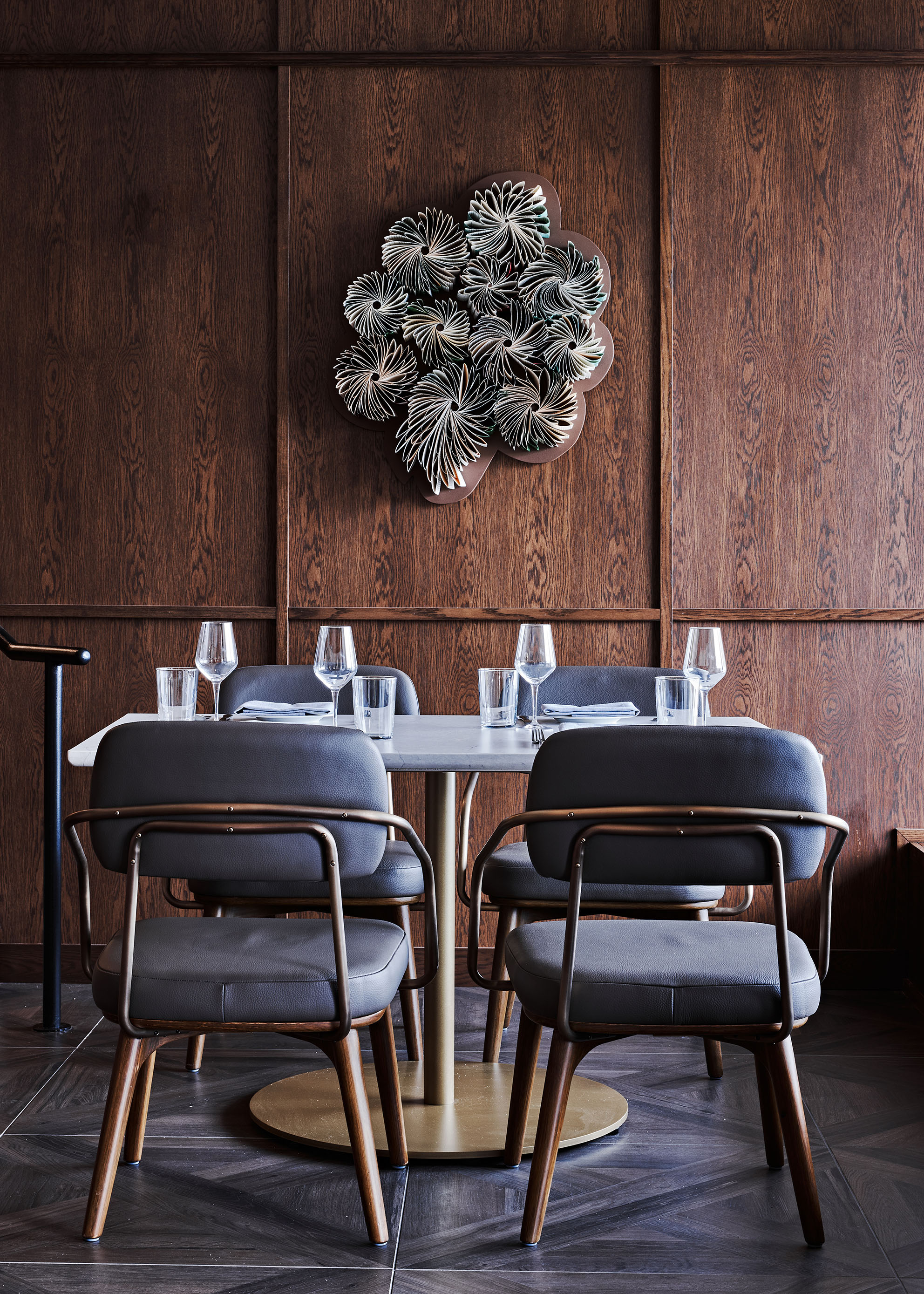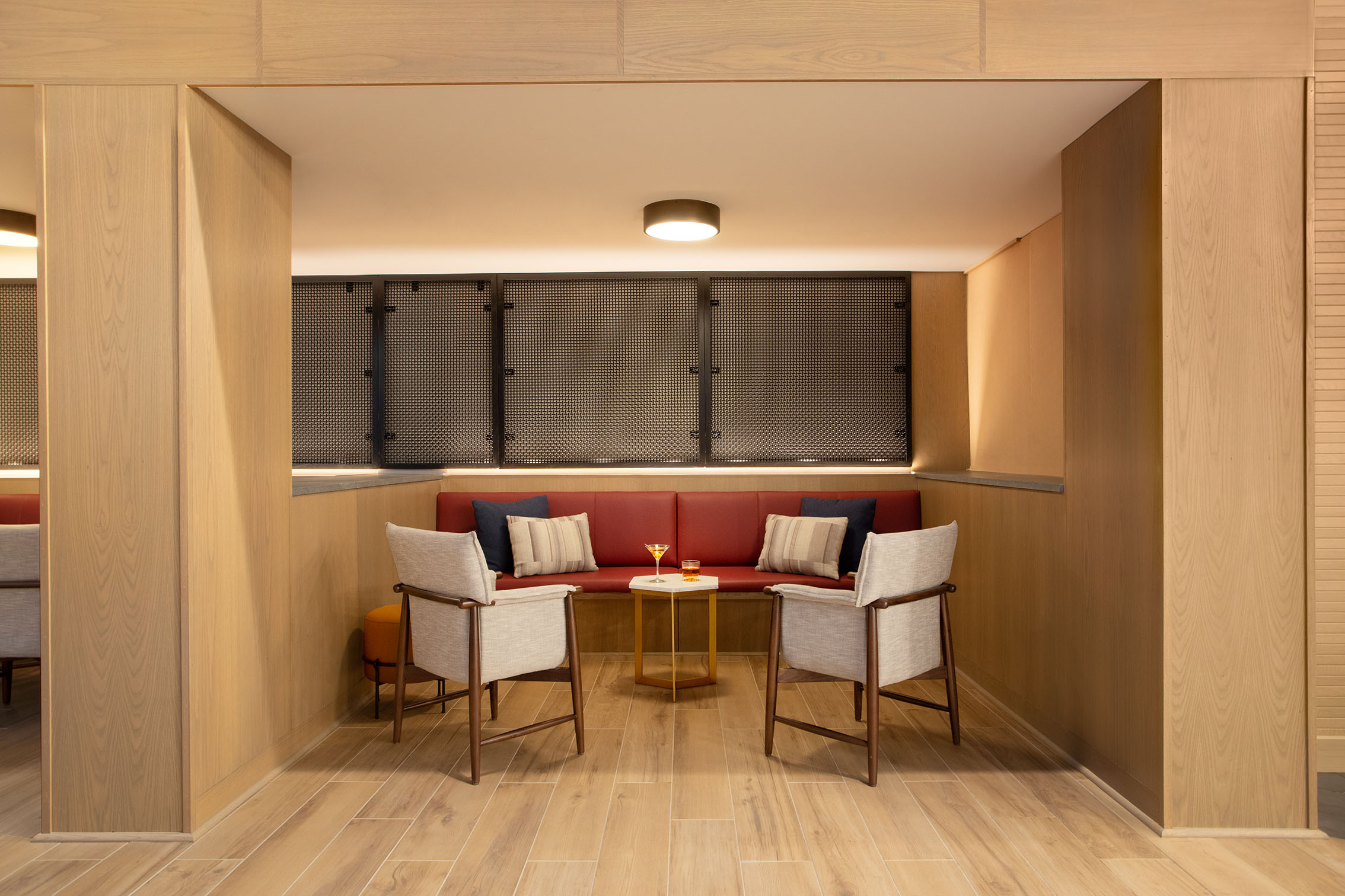 With an overhead trellis and carefully selected materials, the Campbell House design team achieved an intimate space for the Atrium Bar, within the rather large volume of the atrium.