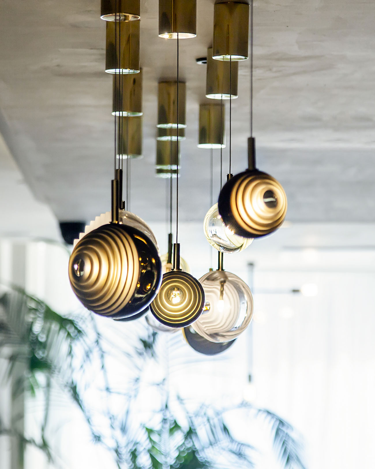 To make walking through the corridors a more meaningful experience, the new design exists of deep, warm and rich materials. Warm colors such as deep blue and copper are used, and rich materials such as copper and brass. Wallpaper printed with copper accents are to be found throughout the corridors. The unique and reflective, yet romantic lights, gives a sense of lightness in the historic Brutalist building.