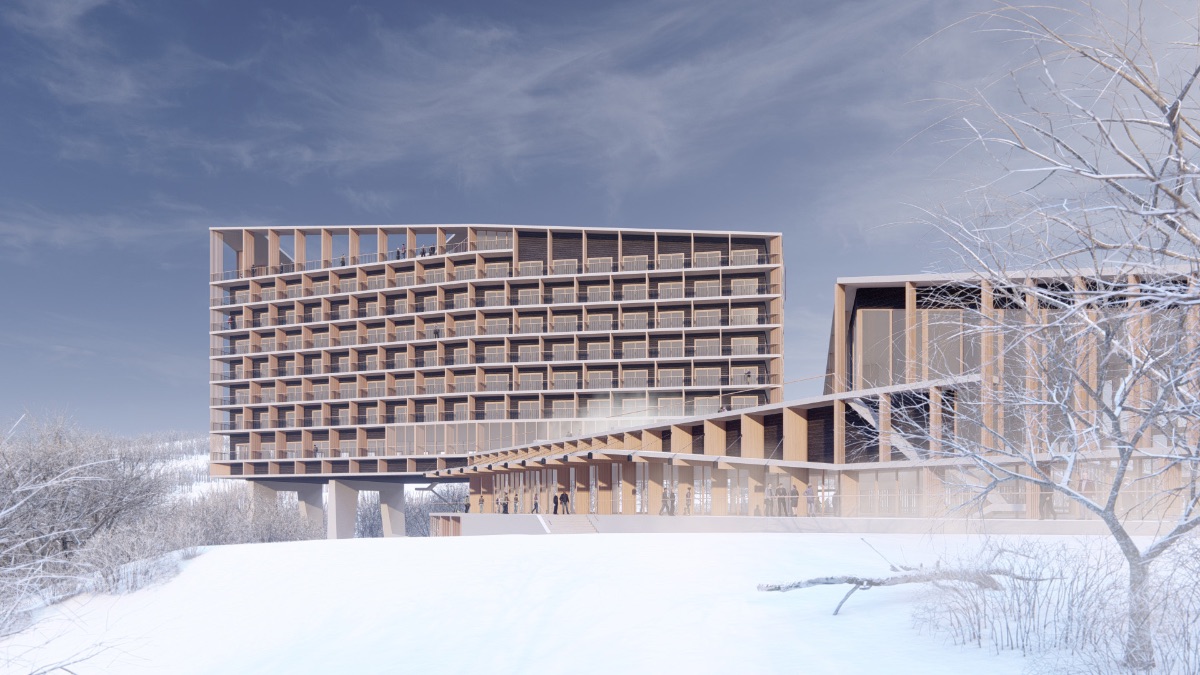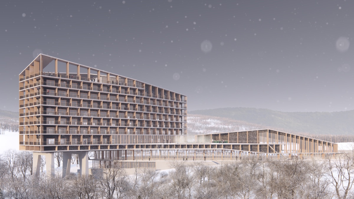 The 3.5-star, 150-room resort will feature a rooftop bar and lounge, multiple restaurants, a heated pool, hot tubs, a fitness center, and a full-service spa. In addition to hotel amenities, a 10,000-square-foot conference and event center will be constructed, featuring outdoor terraces with fire pits.