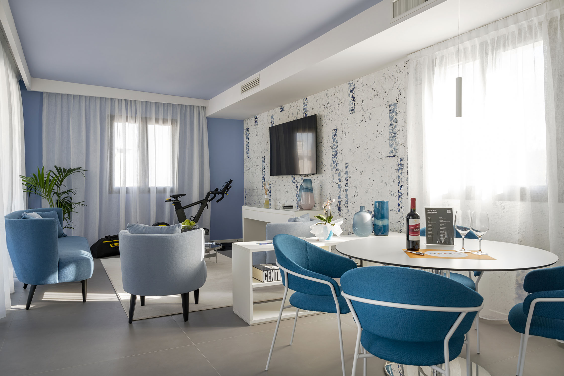 On the second floor are the suites designed by Alessia Galimberti, Hub 48 and Fragment Hospitality. With the concept Una vita da (A)mare - (A life to be loved). the Galimberti studio creates a suite connected to the genius loci characterized by Mediterranean colours, teal and sand. The interior is deliberately neutral, flexible and versatile, ready to be 'dressed' in accessories that will identify and customize the style.