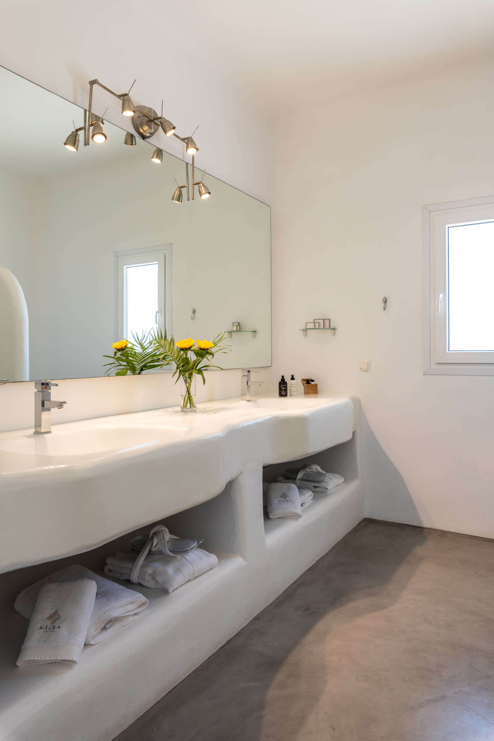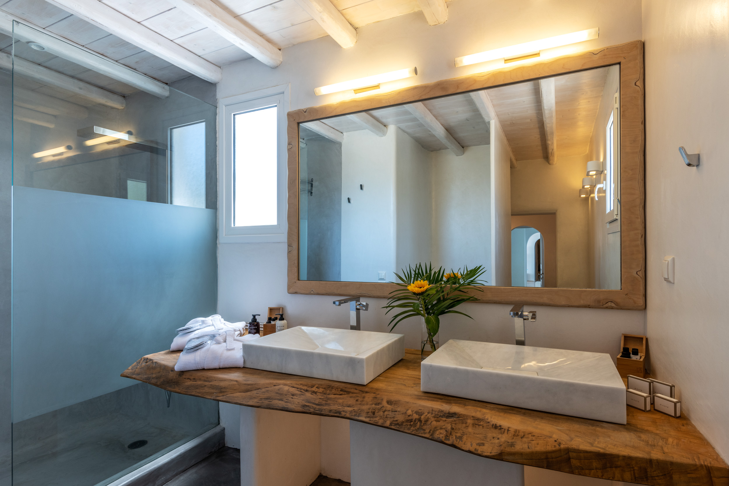 As the largest hotel-serviced exclusive villa-estate on the island, Alegria Mykonos presents a setting for utter relaxation with spacious rooms, all stylishly decorated and equipped with contemporary and luxurious features with attention to the smallest detail. Of the 13 rooms, there are six suites and seven master bedrooms. Guests will put their feet up at the end of a long day in the beaming sunshine, admire the beautiful Aegean sea views and appreciate the sublime elegance of the villa which provides pure privacy.