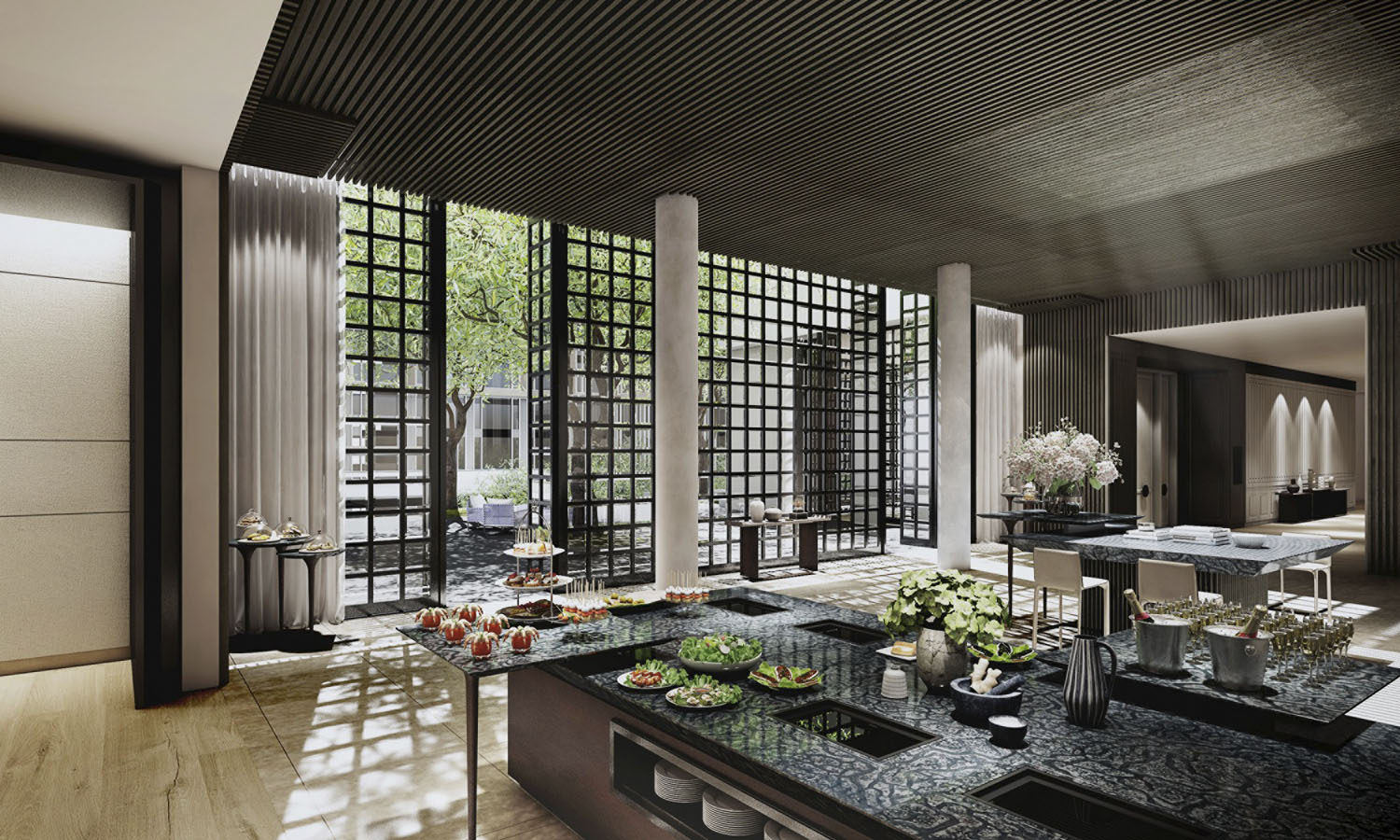 Paying homage to the site's culturally rich and vibrant Chao Phraya River, Jean-Michel Gathy seamlessly blends indoor and outdoor spaces, converging landscape together with interior design. Working closely with the architects and making the absolute best of the hotel's generous proportions, Jean-Michel Gathy has enriched the stunning variety of volumes in the architectural design, while infusing a rare sense of seamless transitions between each of the hotel's distinctive spaces. Jean-Michel Gathy also adds: "In such a magnificent setting, transitions are paramount. Dramatic ceiling alignments, open arches, and the use of parallel exquisite materials within and outside the buildings all contribute to a defining sense of unity amid variety. The overall effect is supremely engaging yet also restful."