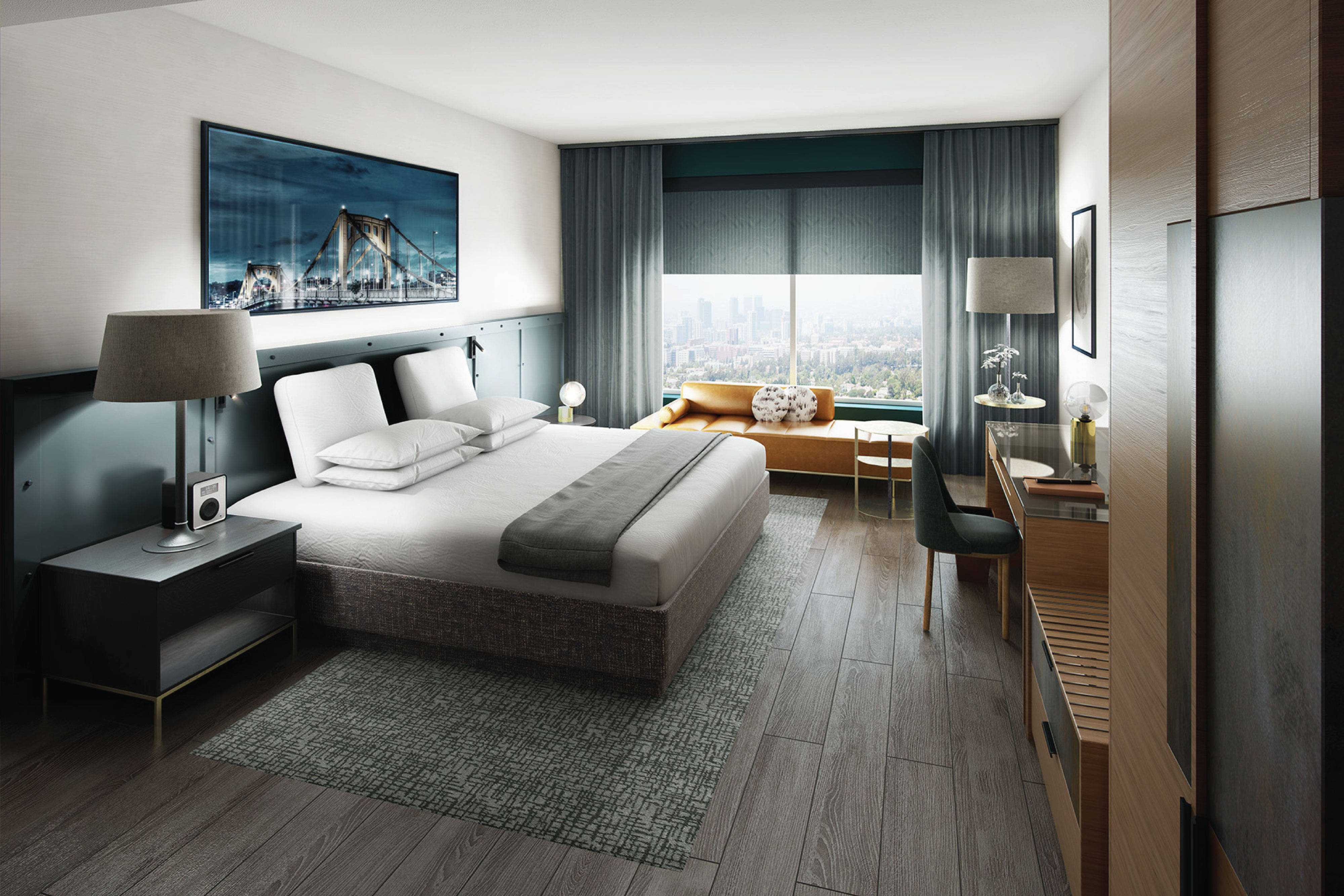 We have worked collaboratively with designers to develop some of the most beautiful and challenging furniture in the world. Working closely with Michael Graves, New York (special thanks to Julie Yurasek) we developed and delivered more than 75 different case good and seating pieces for the St. Regis, Cairo. The grand opening is slated for early 2019 – grand furniture on the grand Nile. One of my personal favorites from the St. Regis which is featured in our High Point showroom, is the guest room nightstand crafted from beautiful oak solids, with a rich blackened ceruse finish, and mother of pearl inlays on the bowed drawer fronts as well as hand inset into the tops. We are currently delivering what I consider to be among the most challenging furniture projects ever developed (Shawn Hausman, New York) – the Standard London. Our Team would also enjoy working with you on something more simple such as the Embassy Suites Toronto where design was inspired by and selected our in house developed collection, Silhouette that features grey tones, textured surfaces, and metal attributes. We would be honored to have the opportunity to work with you on your next project from New York to London to Cairo, wherever it may be in the world. We wish you great success and best regards, Stan Sapp, President & CEO, Distinction Hospitality.