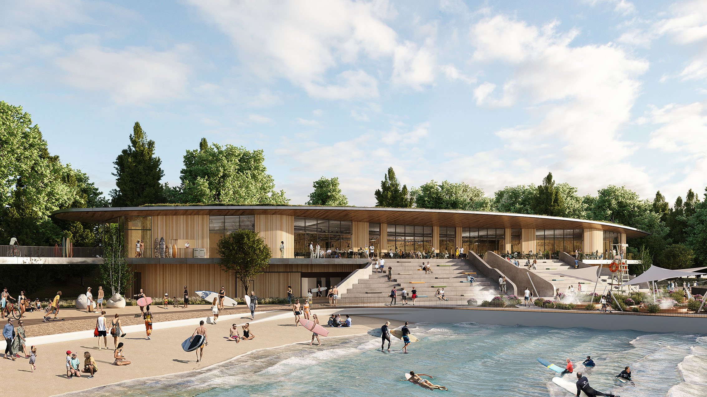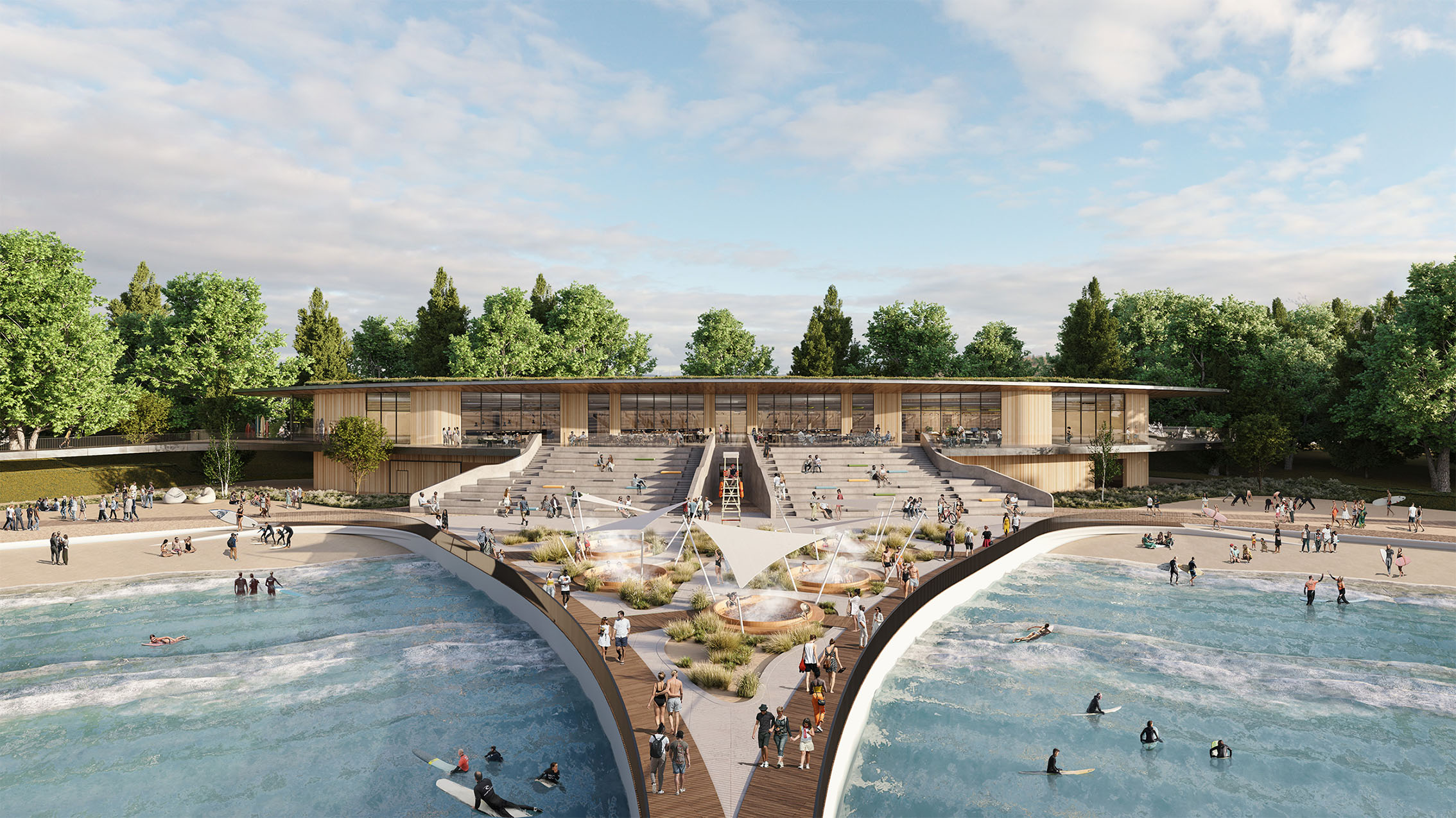 Hollaway Studio, the award-winning architecture practice which has studios in both London and Kent, has created the designs for the 15-acre site which will feature a Wavegarden Cove technology surf lagoon at its centre, which would be the second of its kind in England and the seventh of its kind in the world following facilities in Melbourne, South Korea, Switzerland, Brazil, Wales and Bristol. The revolutionary Wavegarden Cove technology featured in the lagoon, which can be used by up to 80 people at a time, offers up to 1000 perfect waves per hour similar to those in the ocean. It can create more than 20 different wave types ranging from 50 cm to 2m in height, providing rides of up to 15 seconds long for all ages and abilities.