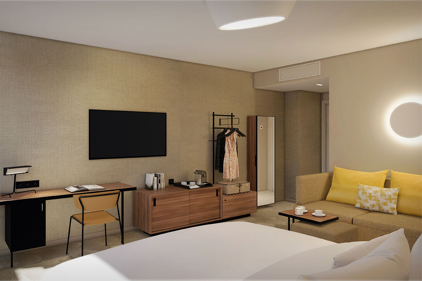 “We are proud to be opening our doors today to the first dual-branded Hyatt project in Europe and to see Hyatt’s select service brands expanding in France,” said Luc Vicherd, Cycas Hospitality’s regional general manager for France. “This is a prime location and we are confident that by combining these two fast-growing brands under one roof we will be best suited to service the needs of both corporate and leisure travelers. Now more than ever, guests appreciate the benefits of spacious rooms and separate places to sleep, work and relax. From the Cozy Corner sofa-sleepers offered in our Hyatt Place guestrooms, to Hyatt House apartment-style suites with fully equipped kitchens, having two sophisticated brands ensures our guests can choose the space that best fits their needs, whilst taking full advantage of both hotels’ wider facilities.”