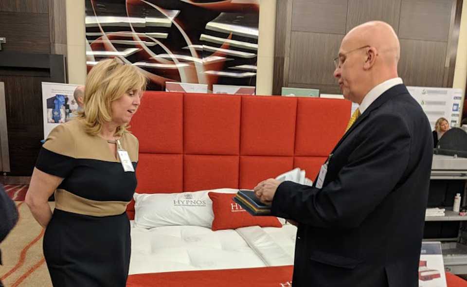 Award-winning luxury bed manufacturer, Hypnos Contract Beds, attended the UK Housekeepers Association (UKHA) Shared Knowledge Day exhibition 2018 showcasing the Safe&Secure™ bed base and Zip & Link Lansdowne Cashmere mattress. The built-in safe combined with a FlexiBase™ offers a stylish, space saving option hoteliers and housekeepers.The bed base incorporates Hypnos’ standard configuration allowing castors at the head, with glides in the middle and the foot end of the base providing stability on both carpets and hard floors, whilst facilitating lifting and moving by housekeepers.