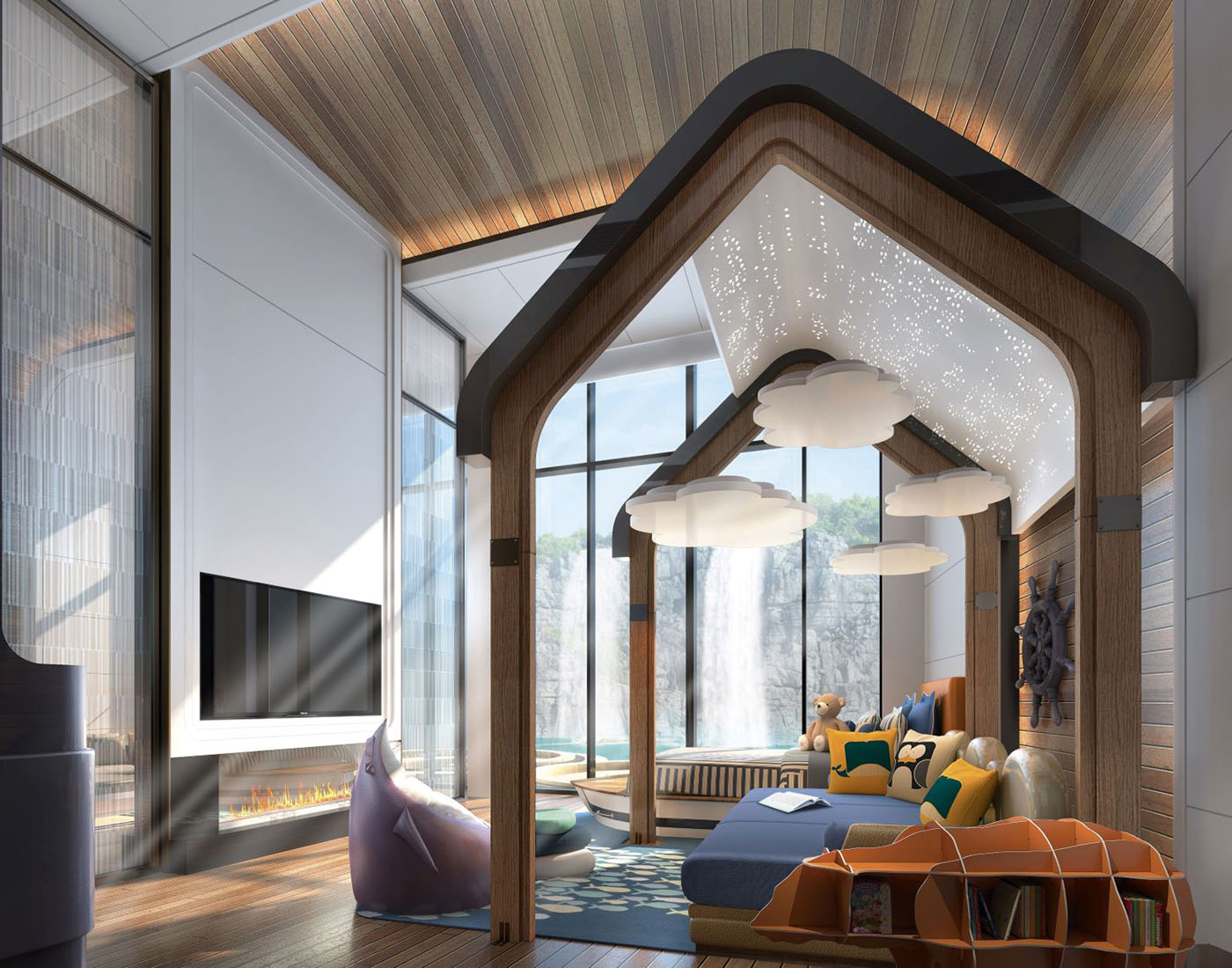 CCD has established a hospitality space that is full of adventurous stories, giving an exotic brand positioning to the hotel. In consideration of the geographic location, topography and uniqueness of the project, CCD has come up with the theme of ‘Adventure to the center of the earth’ as the design concept. Starting from entering the lobby to the underground floors, such as guestrooms, theme restaurants, and bars, all interior designs are conceptualized by an adventurous story. The entire staying experience would be described as following an ancient British explorer to a mining site from the outer layer of the rock to the inner core of the Earth, and ultimately to the underwater sea world.