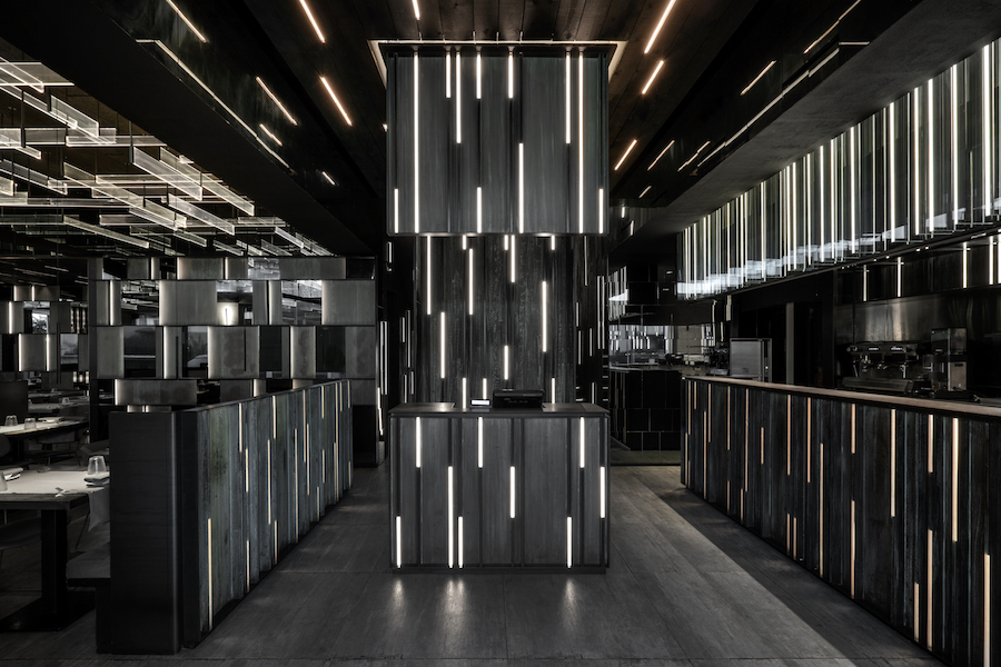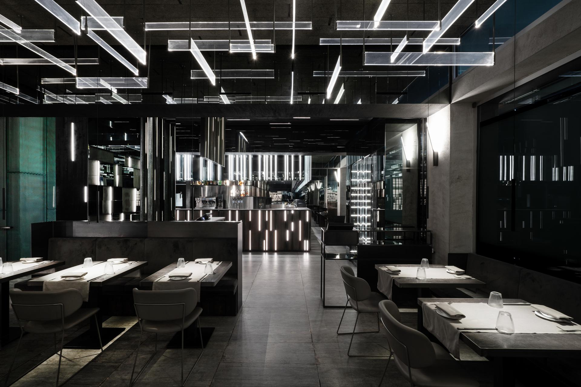 The Italian architect Maurizio Lai shapes the spaces of the Asian restaurant Sushi Club in Cesano Maderno, Milan, as a scenographic backdrop within which to enjoy a renewed gastronomic experience. An immersive space, characterized by dark colors, lines of light and a theatrical atmosphere, with a clever use of ceramics to emphasize the lighting project. Research, interior architecture and design to rethink the expressive canons of Asian dining.