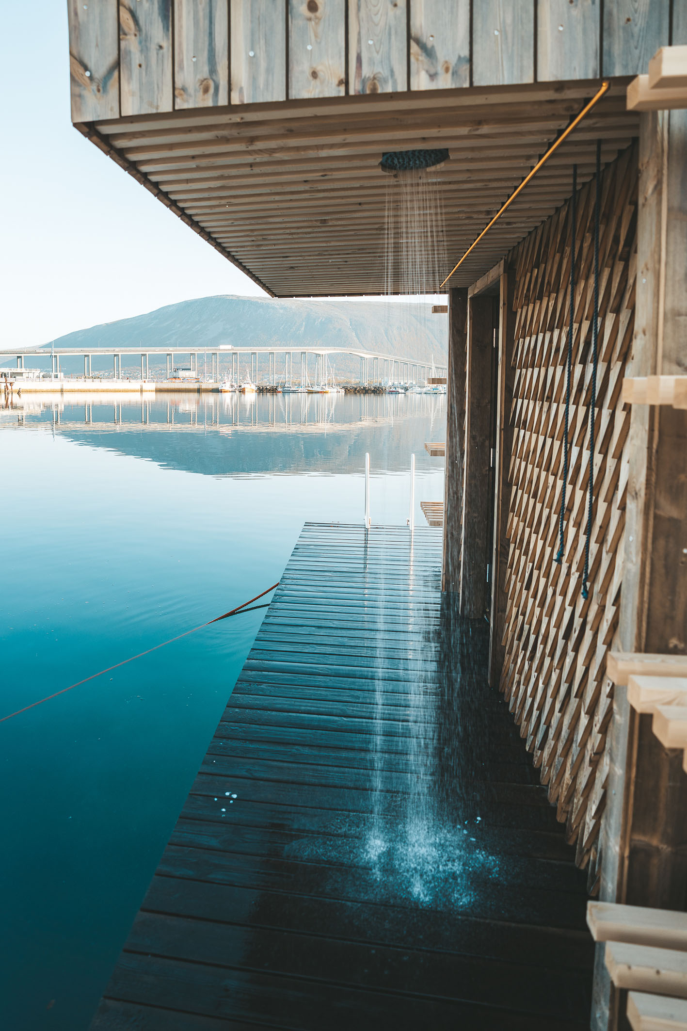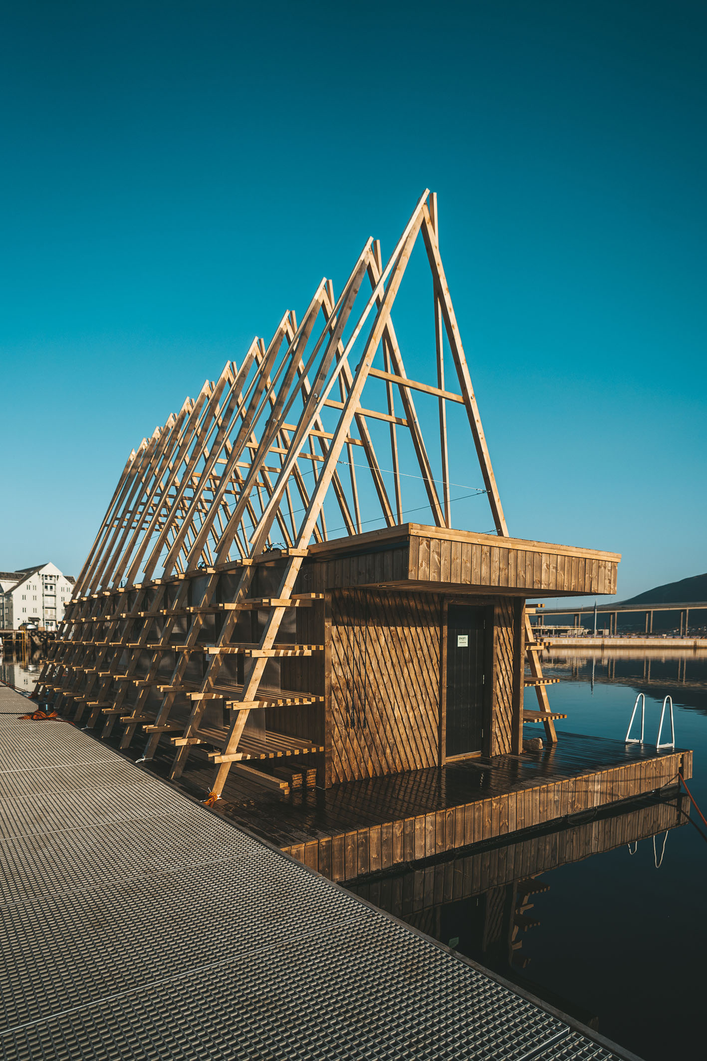 Erik Stange Ankre at Pust, continues, “The public has really embraced the sauna and made it a part of their daily lives. People come at all hours of the day: either for a morning swim, a lunch time bath or a night time session as late as 10pm. The supreme finish provided by Ekte has really made the sauna feel like a little bit of everyday luxury for the people of Tromsø, and of course, the beautiful Kebony makes it stand out as well.”