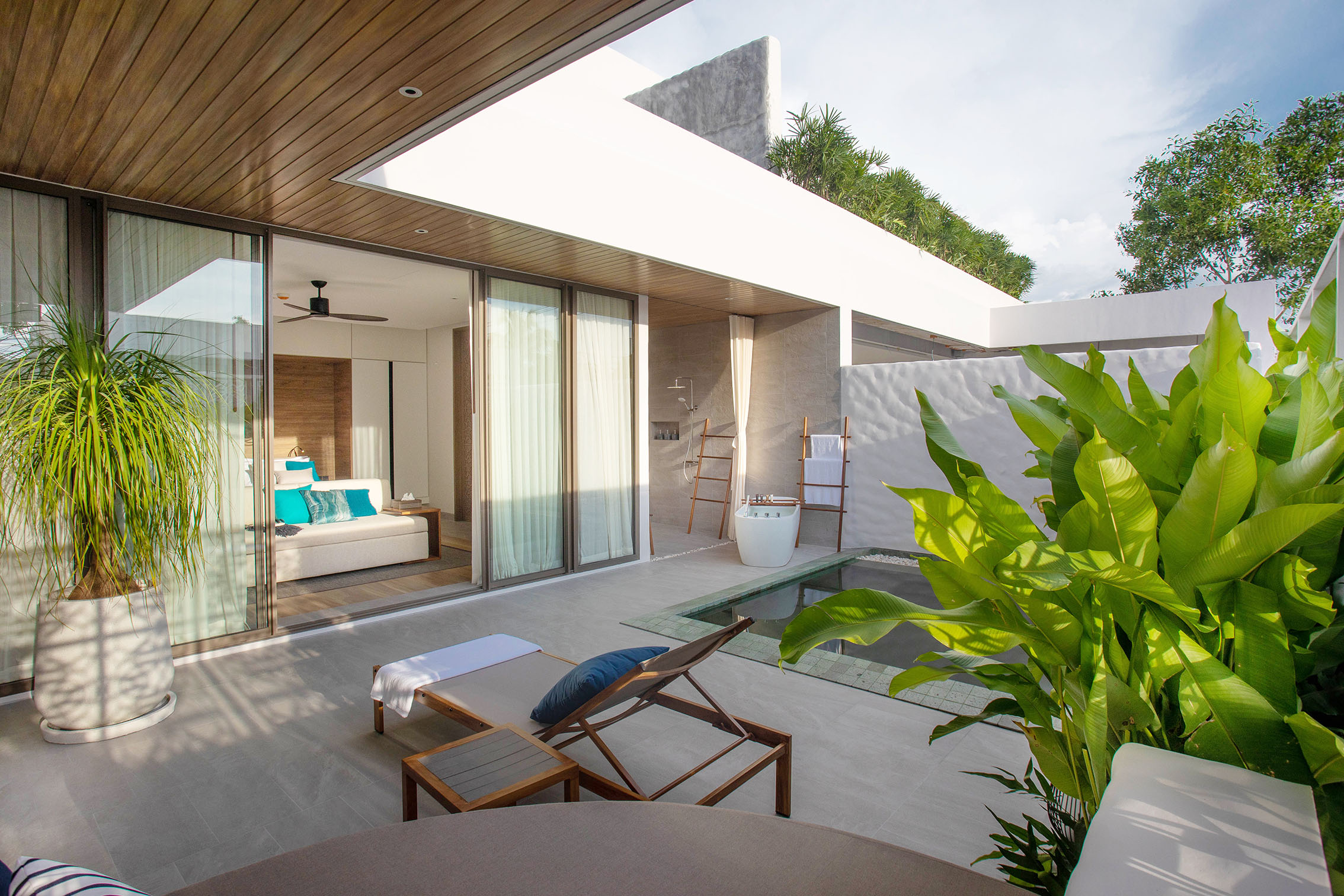 Shaded by a broad spectrum of native plants, the resort's design deploys a neutral palette of colours as a complement to Mai Khao’s sandy shore. Its high ceilings, floor-to-roof glass panels and decorative metal screens take advantage of the natural surrounds and abundance of sunshine.
