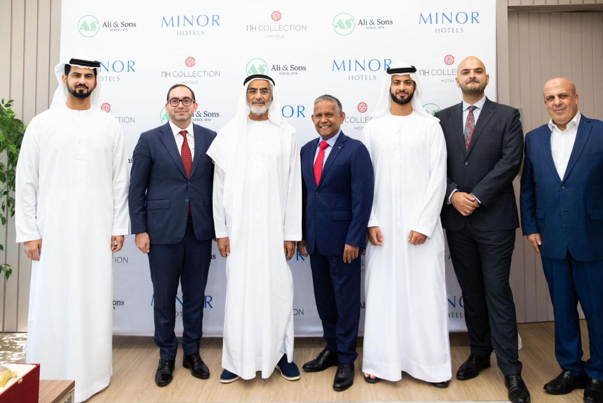 Top photo caption, left to right: Shamis Al Dhaheri – Group Managing Director, Ali & Sons, Amir Golbarg – Senior Vice President Operations, Middle East & Africa, Minor Hotels, HE Ali bin Khalfan Al Mutawa Al Dhaheri – Founder/Chairman of the Family Council, Ali & Sons, Dillip Rajakarier – Group CEO, Minor International & CEO, Minor Hotels, Saeed Al Dhaheri – Managing Director – Investments, Ali & Sons, Ramine Behnam – Vice President Development, Minor Hotels, Atef Ashour – Chief Financial Officer – ABK Investments