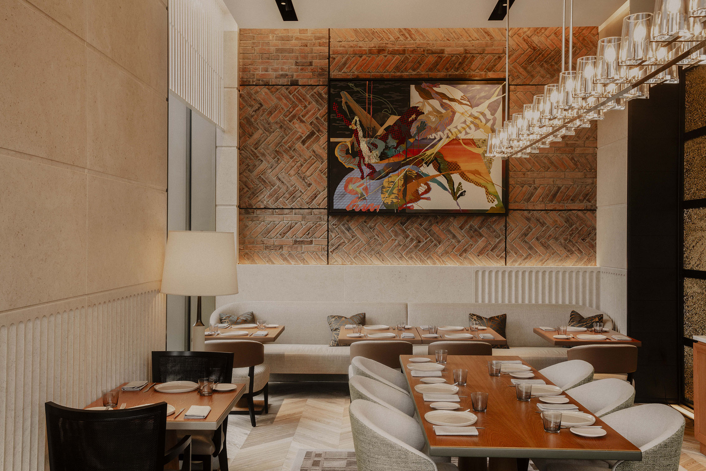 At Park Hyatt London River Thames, art serves as a touch of refinement, echoing its commitment to the understated elegance of the Park Hyatt brand. The thoughtfully curated collection comprises works from 20 artists, weaving a subtle narrative throughout the property. The artwork, harmoniously blending Eastern and Western influences, guide guests through a sophisticated "park by water" experience. This artistic tapestry, with its nod to classic landscapes and cross-cultural connections, enhances the hotel's spaces inviting quiet contemplation and appreciation.In the hotel lobby, Charlie Whinney's ‘Ebb and Flow’ pays homage to the river Thames, to the thoughtfully placed ‘Land and Water’ by renowned artists Ian Rayer-Smith and floral touches in The Spa by Françoise Delaire, each piece contributes to an immersive journey. Guestroom interiors feature artistic flourishes by Gabriel Leung and Tsi Kwan Lau.The interior design is crafted by the celebrated Super Potato Studio, drawing inspiration from the area's storied past to seamlessly interweave contemporary London aesthetic, where every detail is crafted to elevate the art of hospitality.