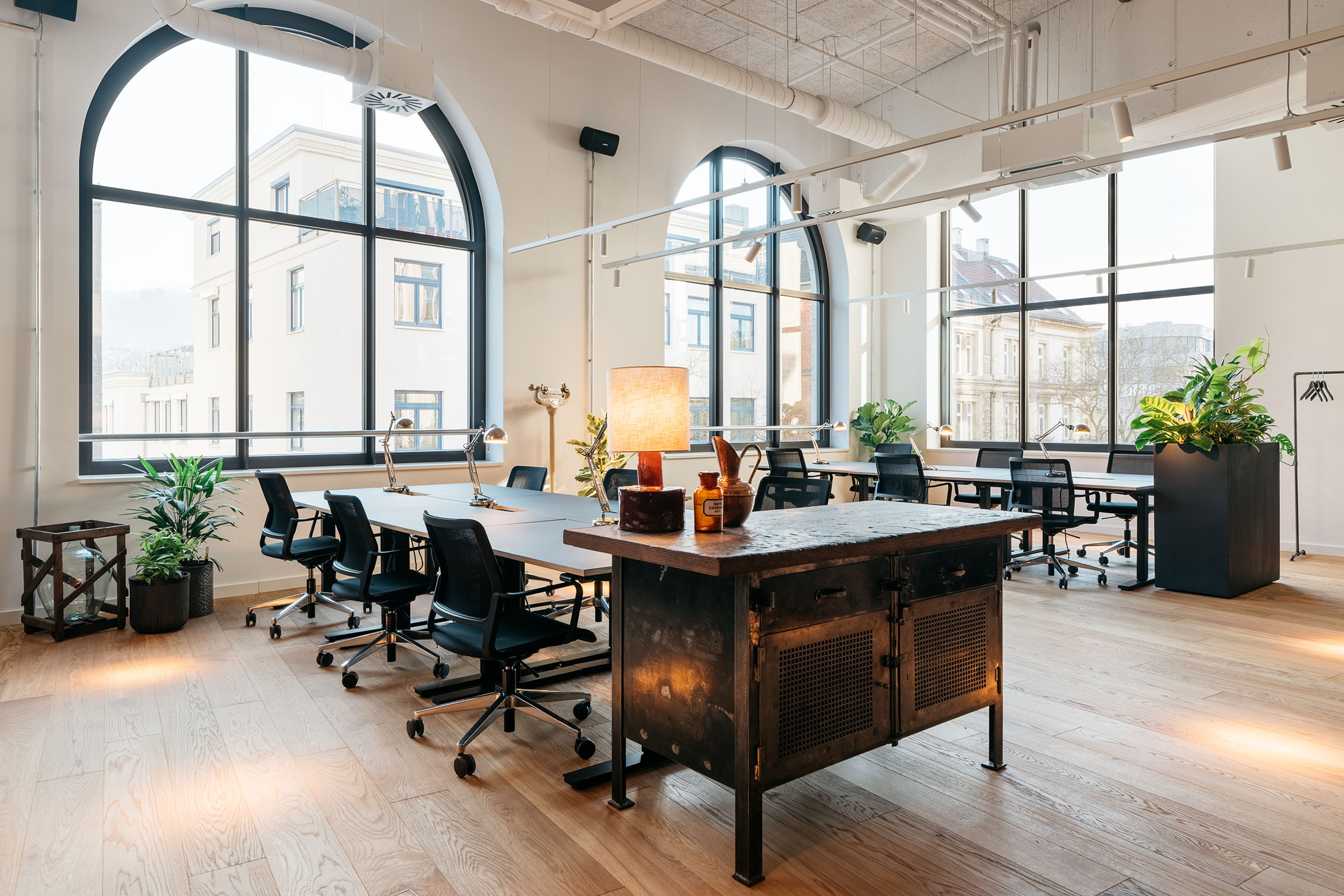 Ruby's Lean Luxury philosophy also applies to the workspaces: location quality, well thought-out room design, intelligent processes, and excellent value for money. The focus is on productive work, uncomplicated comfort, and an inspiring community. Just like the hotels, the Ruby Workspaces are individually designed and locally rooted. The vintage furniture in the public areas, high-quality materials and sophisticated lighting concepts are also reminiscent of the boutique lifestyle hotel industry. The community space with multifunctional kitchen island and professional barista coffee machine form the heart of the co-working space.