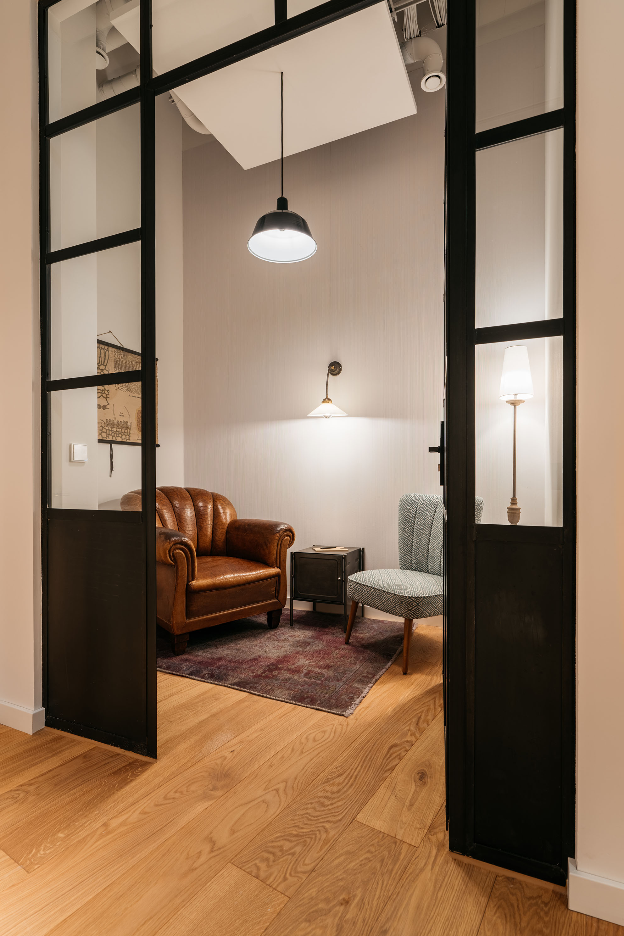 Inspired by the beginnings of winemaking and alcohol distillation, Ruby Hanna pays homage to the centuries-old history of viticulture in the region. The interior design of the hotel is also inspired by the time of the alchemists as well as the history of the building and its developer. An eye-catcher is the large apothecary's cupboard filled with countless old vials, formerly mysterious tinctures, and remedies. An oversized mirror ball, which symbolises the full moon in alchemy, sets the right mood for upcoming music events with the Ruby resident artists. Comfortable armchairs also ensure the typical cozy Ruby atmosphere on three levels.