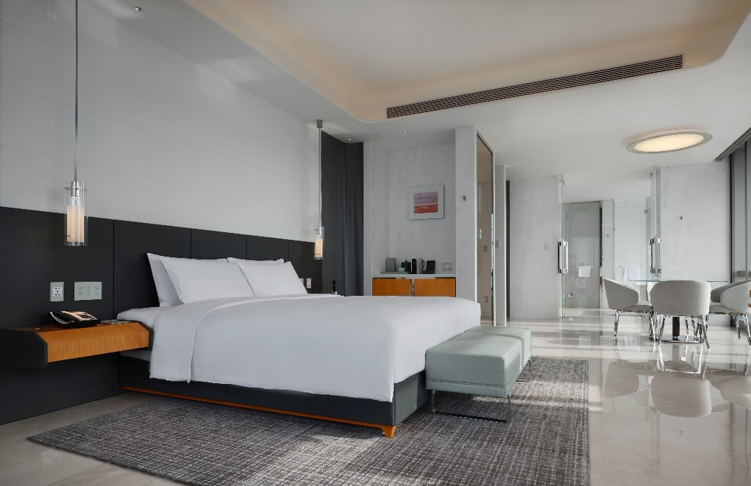 Sofitel Haikou’s interior design is helmed by Hong Kong-based hospitality experts CCD (Cheng Chung Design), with garden design by Singapore’s Belt Collins. The hotel offers 209 modern guestrooms and suites ranging from 45 to 67 square meters in size. Each well-appointed room features floor to ceiling windows with stunning sea or city views. The chic décor includes a vibrant orange-based color palette with smart room technology. Featuring the signature Sofitel MyBed™, the sensory experience includes a choice of designer pillows and aromatherapy scents inspired by the locale. Bathroom amenities feature luxury French brands Lanvin and Hermès for exquisite bath and shower experiences.
