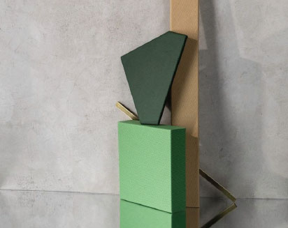 The design was inspired by the geometry of contemporary architecture, the fragmented texture features a tone-on-tone prismatic effect. The color palette is a nod to the Bauhaus and Art Deco movements: a mixture of brights, complex shades and neutrals are featured in the sizeable offering of 19 shades.