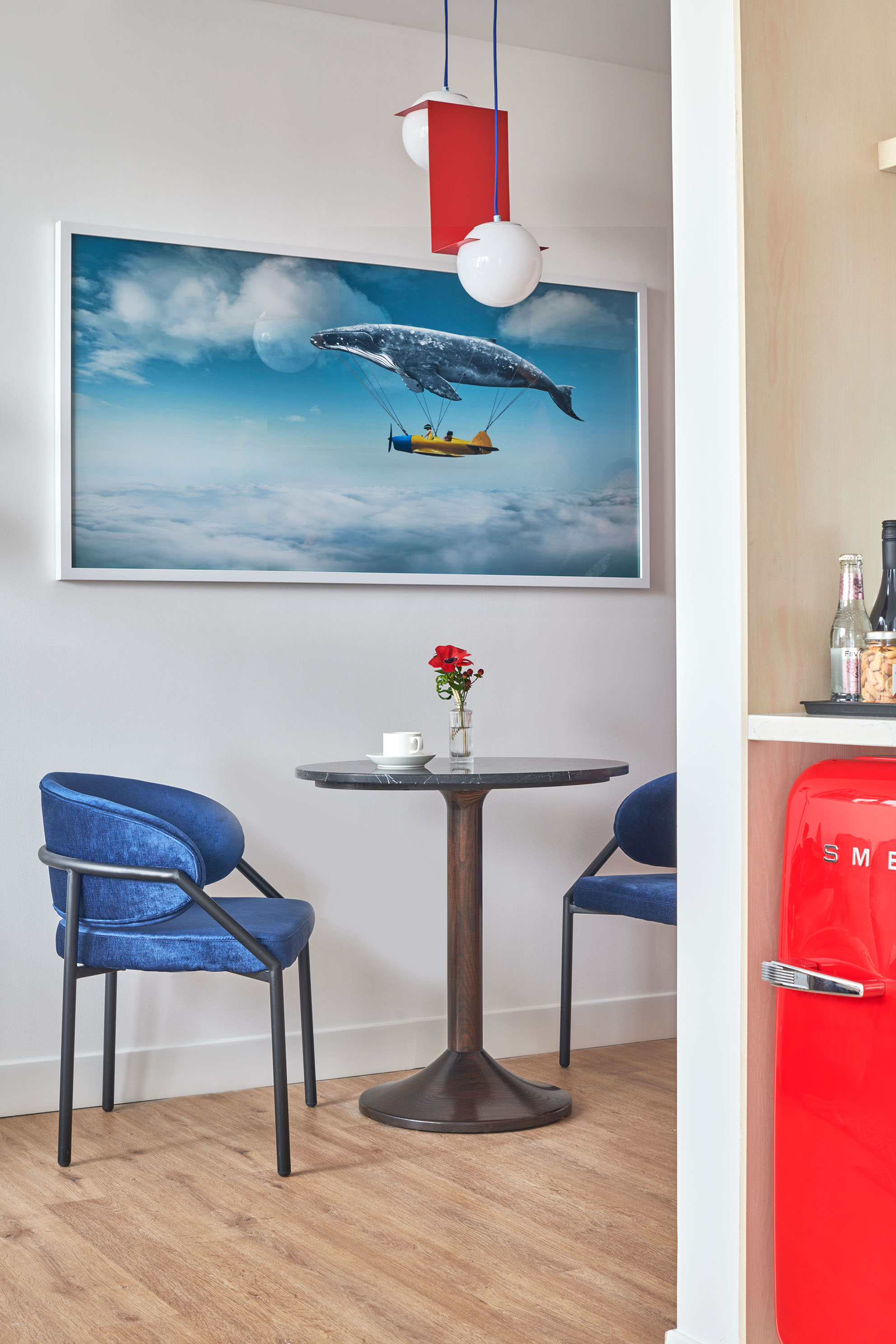 To create a contemporary space that seamlessly melds the classic Virgin aesthetic with the dynamism of the Big Apple, Virgin Hotels tapped the Brooklyn-based design team at MARKZEFF and community-minded architecture firm Stantec to spearhead the design of the hotel. The resulting design language is playful and authentic to New York City while simultaneously delivering the luxurious hospitality standards that Virgin Group has pioneered for decades. While maximizing views throughout accommodations and public spaces, subtle design elements reference nearby Madison Square Park, with some bolder design components reminiscent of the Virgin brand including a signature red staircase connecting the third and fourth floors as well as other red accents like the Chamber doors. The hotel also features an impressive art collection with over 100 different pieces. From the lobby's "Where's Richard?" mural by Nigel Sussman, inviting guests to play a Virgin-themed version of "Where's Waldo," to the hotel's largest 2D piece "The Sweat of Disco" by artist Joeggu Hossmann, celebrating the city's history, icons and party scene, the hotel's collection is a nod to the legacy and future of the Virgin brand as well as New York City.